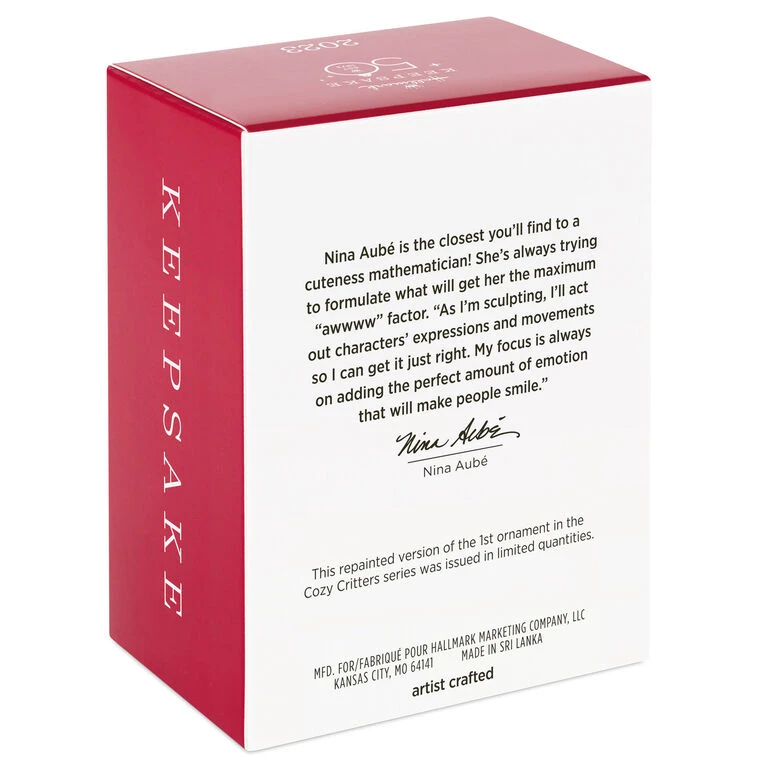 - Key Features: This repainted version of the 1st in the Cozy Critters Keepsake Ornament series was issued in limited quantities for the Keepsake Ornament 50th Anniversary. Not eligible for Keepsake Wish List.