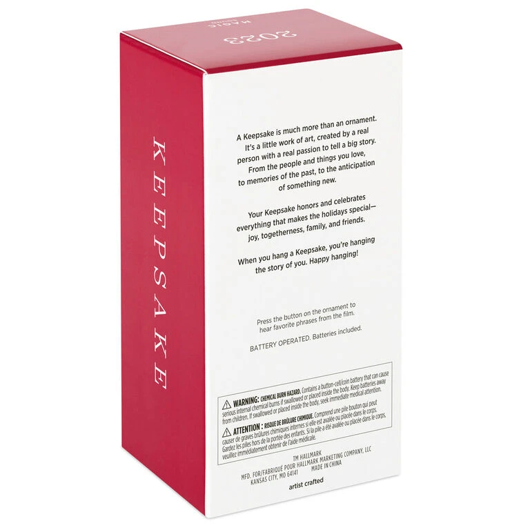 - Key Features: Press the button on the Magic Sound ornament to hear favorite phrases from the movie.